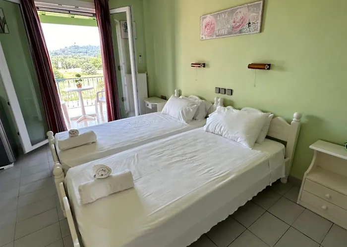 Hosté v apartmánu Telis Apartments si budou moci užít aktivity ve městě Roda a jeho okolí, jako potápění, kanoistika a jízda na koni. Ubytování se pyšní výhledy na zahradu spolu s kompletní kuchyní, a nachází se 4 km od Hydropolis Water Park.